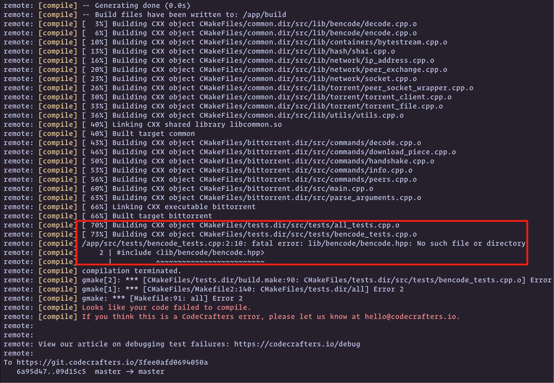 [your_program] [ 5%] Building CXX object CMakeFiles/bittorrent.dir/src/commands/decode.cpp.o